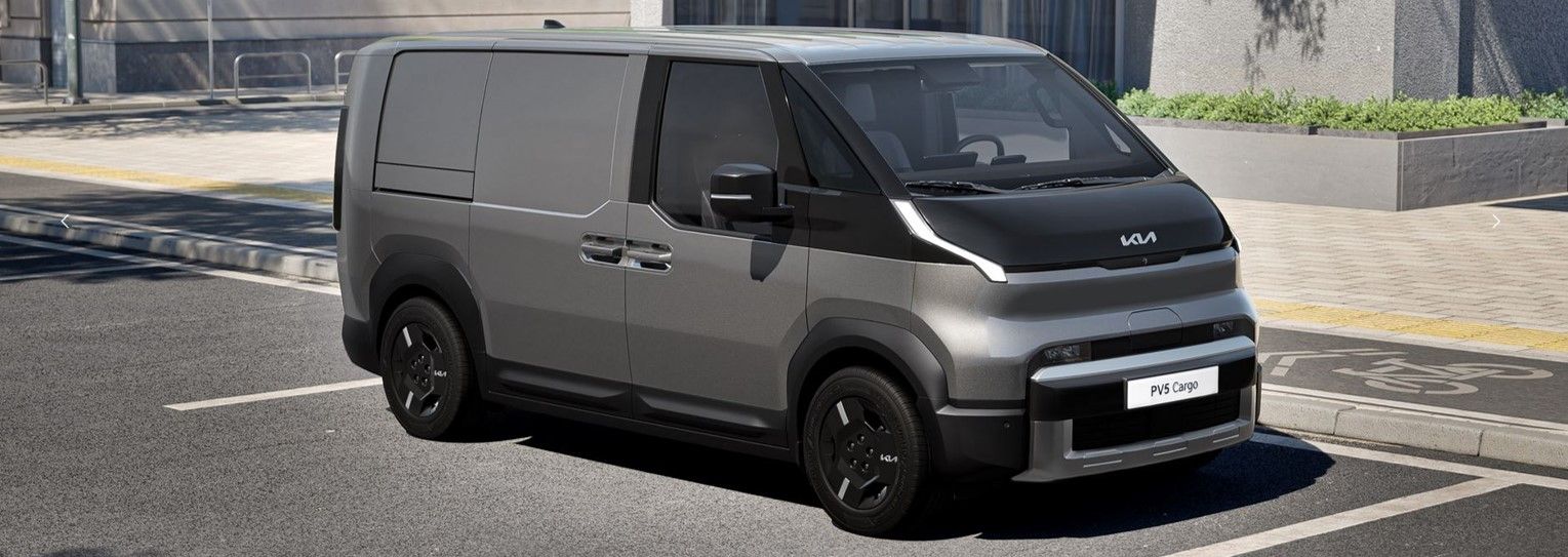 Kia PV5 Cargo L2H1 (120 kW/163 PS): Stromverbrauch kombiniert 20,1 kWh/100 km. CO₂-Emissionen kombiniert 0 g/km. CO₂- Klasse A. Abbildung zeigt kostenpflichtige Sonderausstattung.